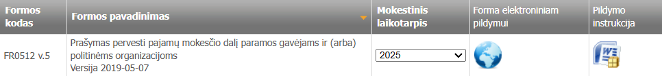 Paspauskite - Forma Elektroniniam pildymui (t. y. paspauskite ant mėlynos gaublio ikonėlės) (žr. žemiau):